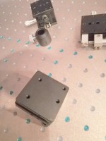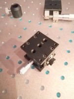 Linear stages are smooth in movement. They are fully lockable. The z-stage has side lead screw. That may be more convenient than Standa solution at vertical stages. The stages could be attached to each other directly, but not to the optical table –some base is needed. Vertical stage has M6 and M3 holes, x-stage – M3 holes only. This solution is not convenient as M6 and M4 are used usually. Standa has the same issue.